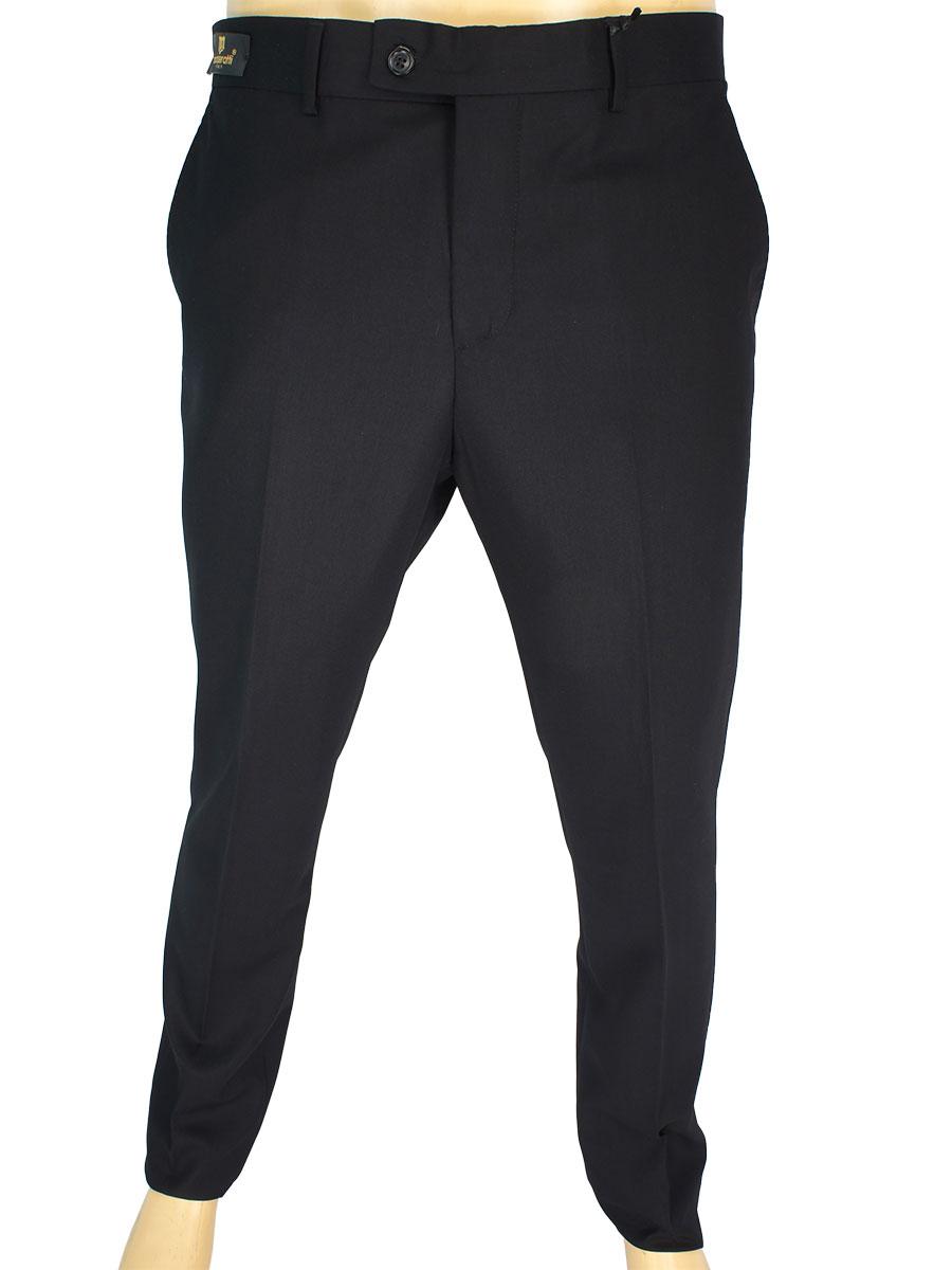 Чоловічі класичні брюки Monzeratti в чорному кольорі виконані в Туреччині з натуральної вовни з додаванням віскози на сучасному обладнанні. Деталі: дві косі кишені попереду і дві прорізні ззаду, пояс з шлейками для ременя. Це прямі штани зі стрілками, в яких чоловік має презентабельний і солідний вигляд. Класичні брюки - це універсальна річ, яка має бути присутня в гардеробі у кожного чоловіка. Носять класичні чоловічі брюки як самостійну річ під сорочку або светр, а також в комплекті з піджаком або жилетом.